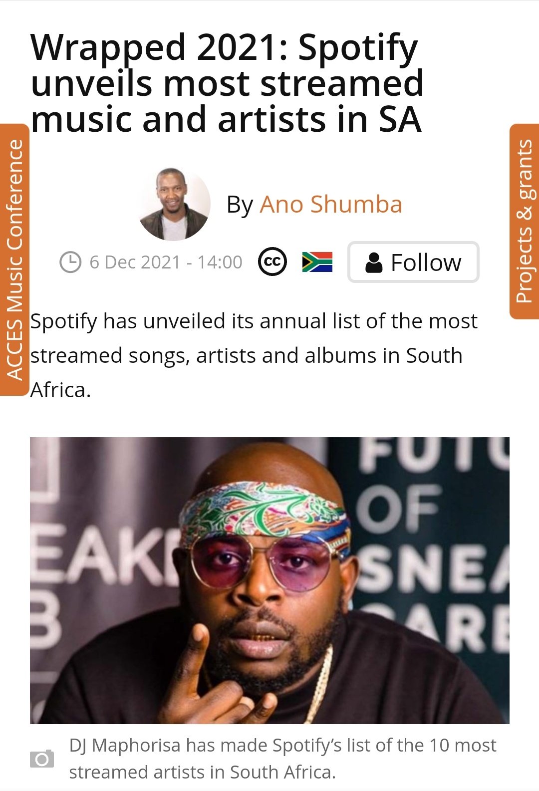 most streamed artist on spotify 2021 in south africa